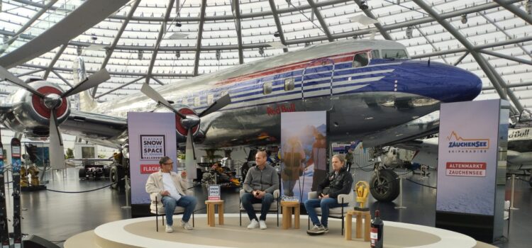 Salzburg/ Red Bull Hangar 7 – Von Klimaerwärmung keine Spur! Pünktlich zur Präsentation der traditionellen, österreichischen Wintersportorte Flachau, Wagrain und Altenmarkt/ Zauchensee im Salzburger Eventcenter Red Bull Hangar 7 gab’s reichlich Kälte und Schnee.